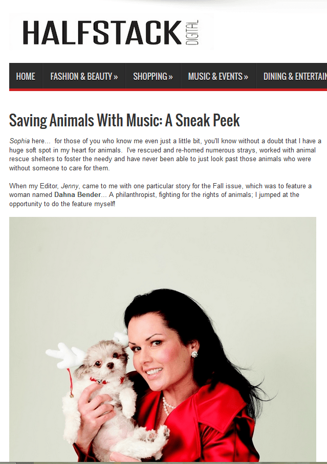 This Haystack Magazine article offers a sneak peak into Dahna’s upcoming project – a Christmas CD meant to save dogs. The profits from this CD will be donated to National Mill Dog Rescue, helping with their efforts to rescue discarded breeding dogs from puppy mills. Click here to read the full article.